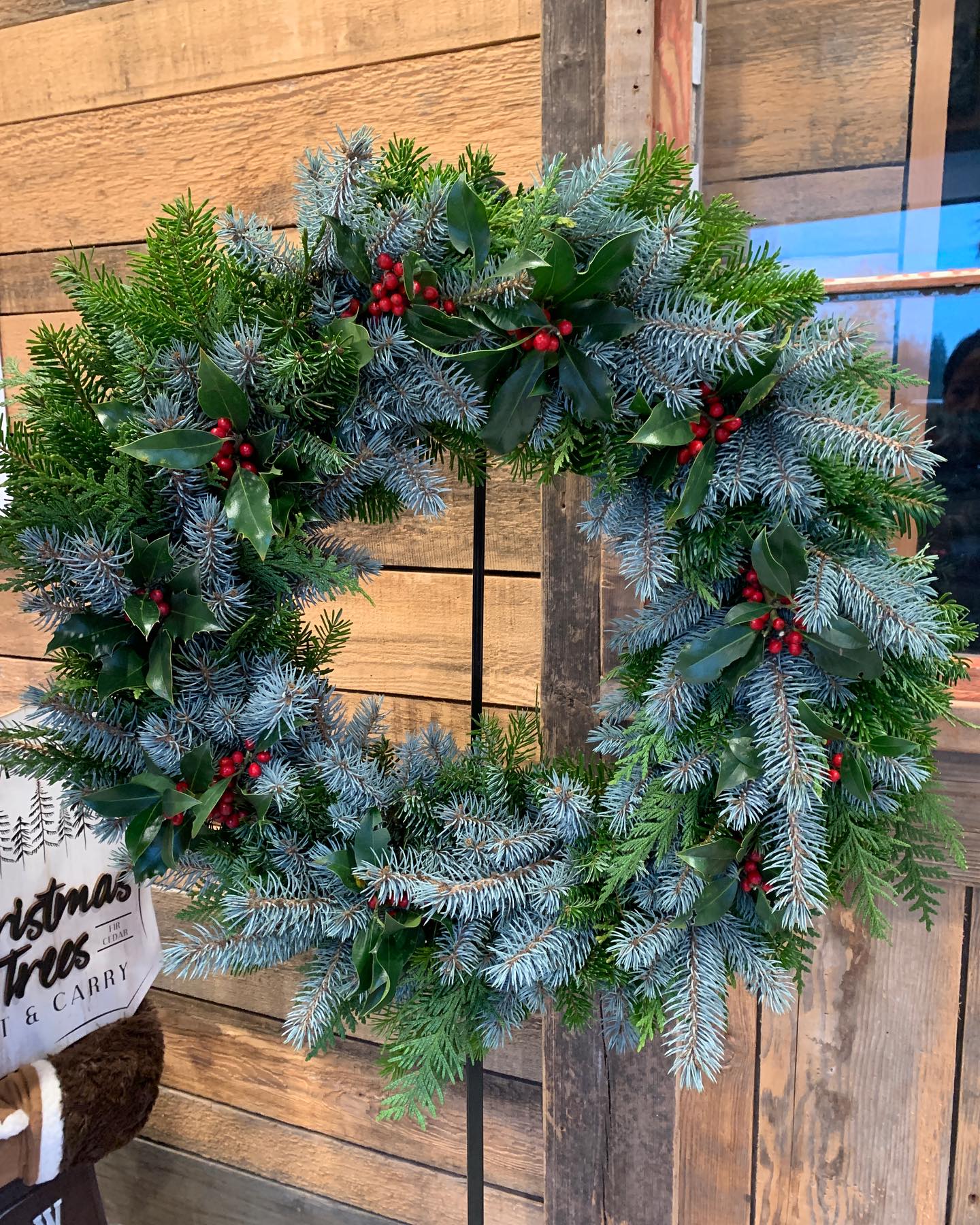 This class includes all the supplies to make a 14" wreath using all clippings from our farm: our premium Nordmann Fir, Blue Spruce, Cedar, Boxwood, fresh Hollie’s, and pine cones. Additional items, such as ribbons or a wreath hanger, are available for an extra charge. PLUS, enjoy a complimentary cup of hot apple cider while you create!