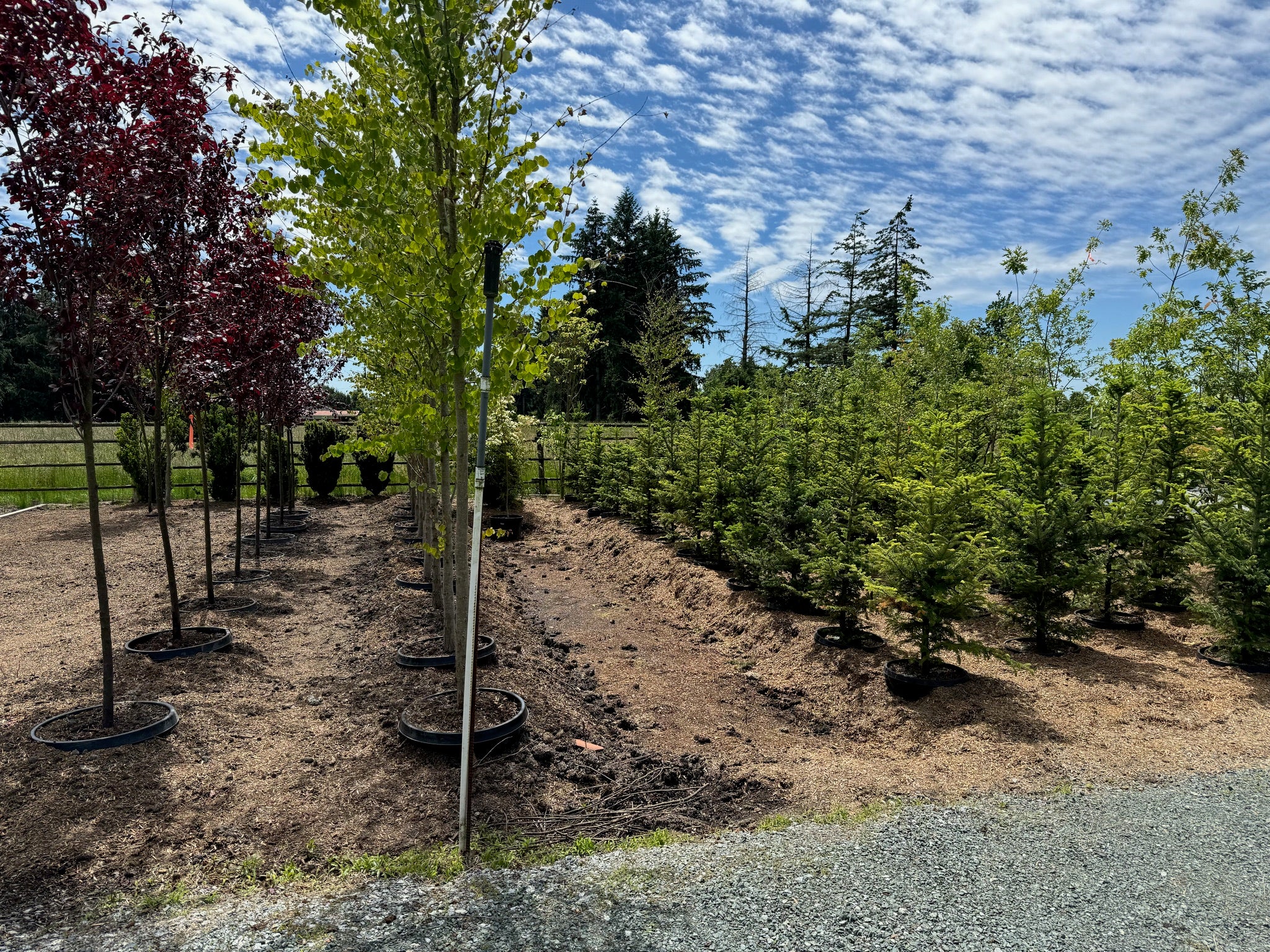 We also have Caliper Evergreen trees: Noble Fir, Grand Fir, Nordmann Fir, Fraser Fir, Canaan Fir, and Douglas Fir, Excelsa cedar, Sumrag Cedar and Taxus Hicksii, Sitka Spruce, Serbian spruce, among other varieties.